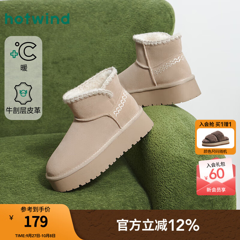 热风(Hotwind)厚底雪地靴女鞋2025年冬季新款增高加绒加厚短靴百搭棉鞋靴子 03米色 37