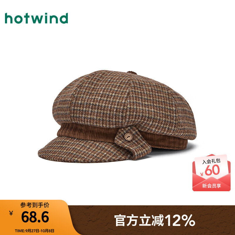 热风【商场同款】女士帽子2025年秋新款女士复古软檐文艺风百搭八角帽 02棕色 F