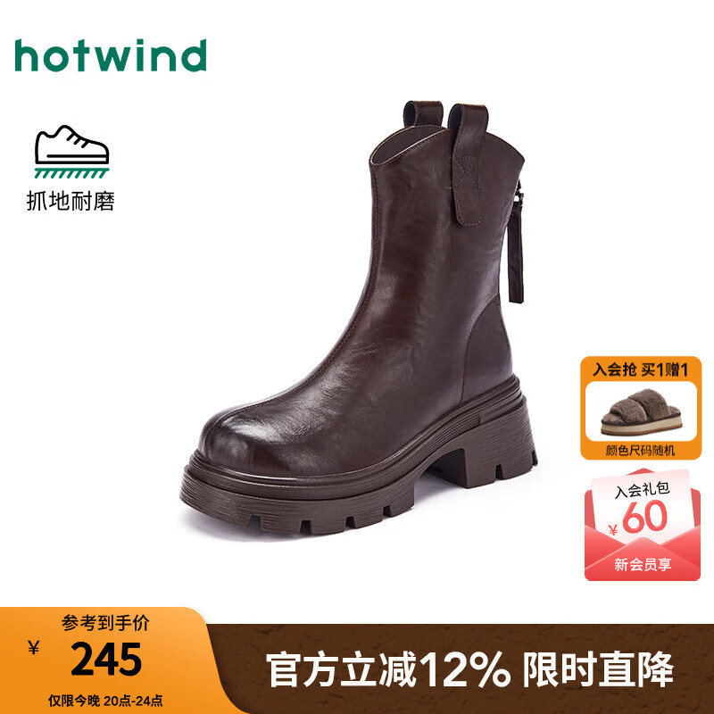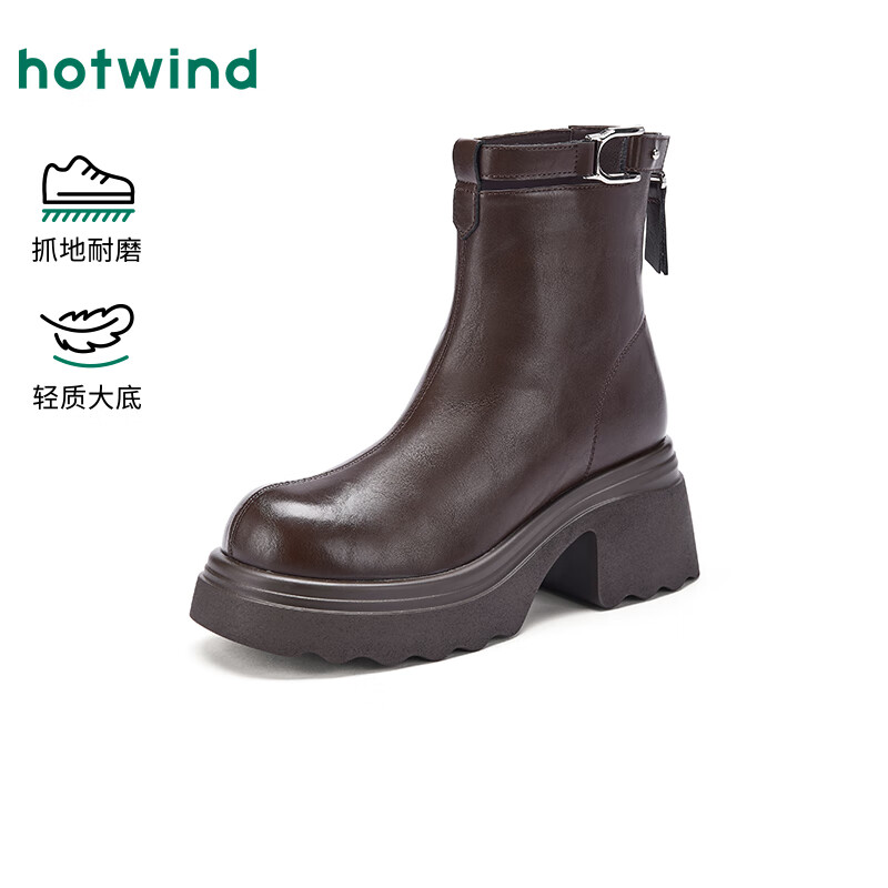 热风厚底短靴女2025年冬季新款粗跟增高时装靴百搭瘦瘦靴子女鞋子 02棕色 38