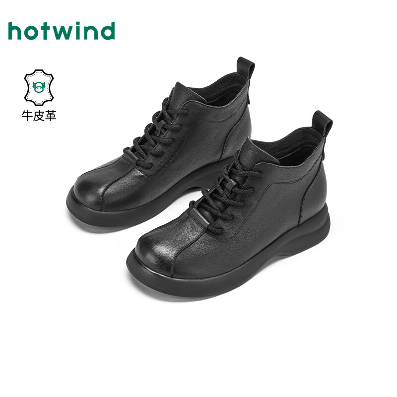 热风黑色马丁靴女鞋2025年冬季新款经典百搭短筒靴厚底户外靴子女 01黑色 (牛头层皮革) 34
