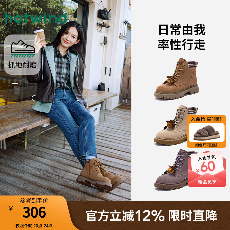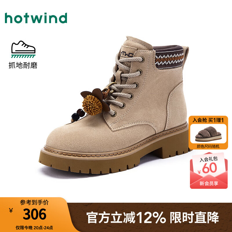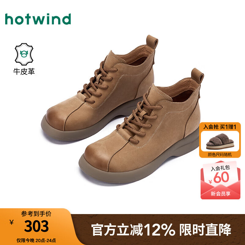 热风【商场同款】厚底马丁靴女2025年冬季新款复古百搭户外短筒休闲靴 08杏色 牛头层皮革 34