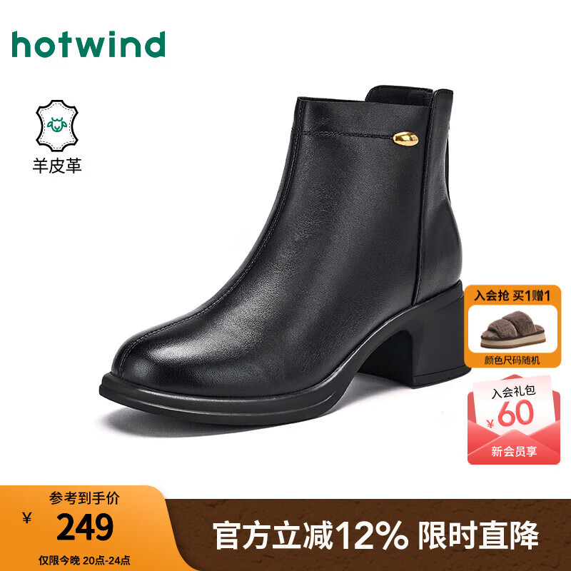热风黑色时装靴女2025年秋季新款粗跟短筒靴百搭复古靴子棕色女鞋 01黑色 羊头层皮革 35