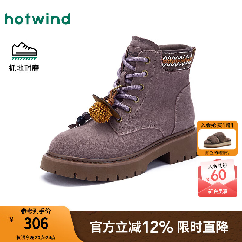 热风复古工装靴女款2025年冬季新款大黄靴百搭户外马丁靴子女鞋子 11紫色 36