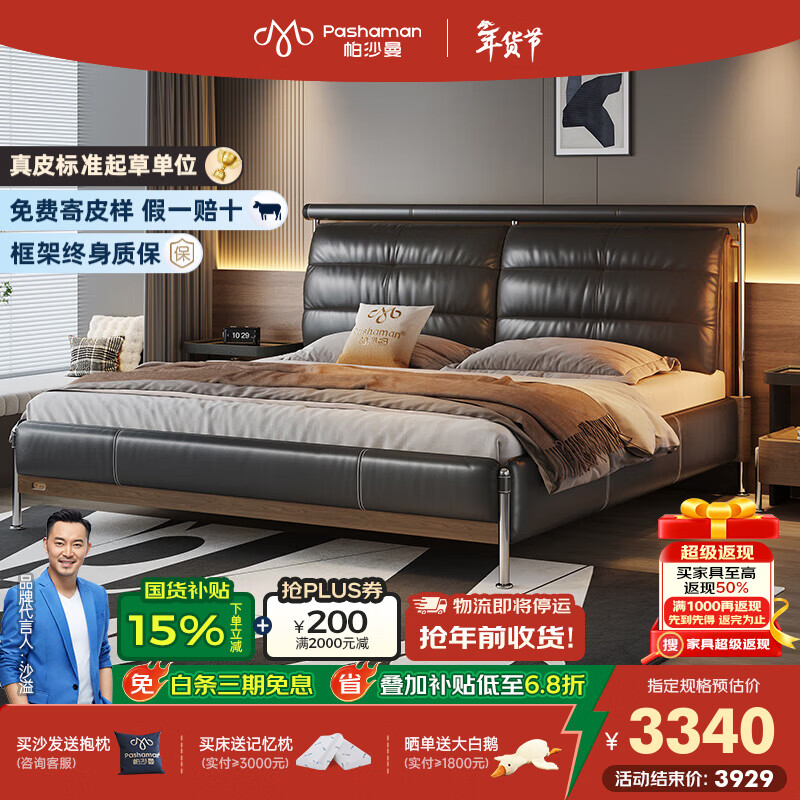 帕沙曼包豪斯床真皮实木床1米8双人床主卧高端大气2025新款CP005-L 【豪华版|单床】15cm钢木排骨架+头层牛皮 1.5*2米