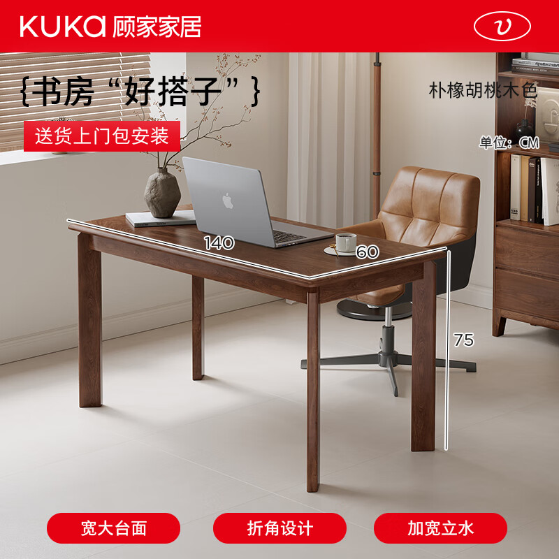 顾家家居实木书桌高级感轻奢电脑桌去客厅化大长桌餐桌办公桌家用茶桌茶台 包安装【朴橡胡桃木色】140*60*75CM