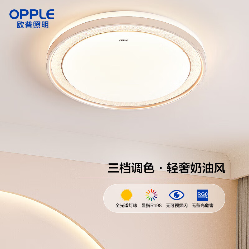 欧普照明(OPPLE)全光谱护眼吸顶灯卧室大灯可调光LED照明灯具轻奢现代大气 【全光谱圆卧灯】Ra98/多档调色