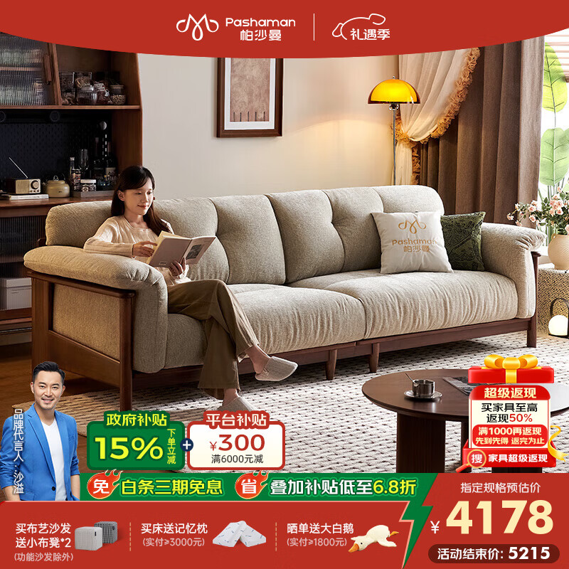 帕沙曼可拆洗实木沙发布艺小户型中古风云朵沙发雪尼尔宽坐深 MF200-Q 【柔咖灰】2.9米四人位(可拆洗设计) 【抗菌雪尼尔绒TY74】