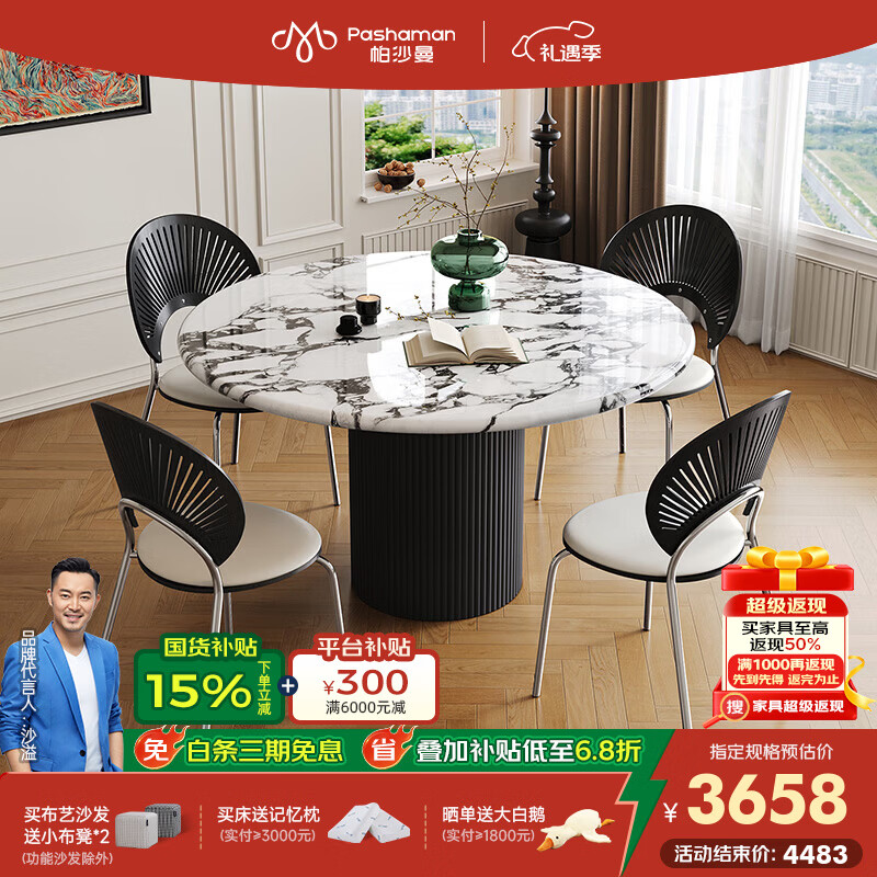 帕沙曼高端宝格丽餐桌轻奢高级感大理石圆桌子客厅家用小户型饭桌 6165Y 【宝格丽白大理石】单餐桌+餐椅*6张(6154Y) 130cm *50cm*75cm