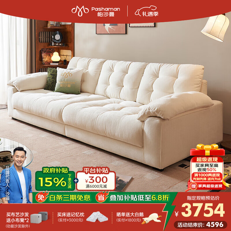 帕沙曼可拆洗沙发布艺小户型客厅现代简约云朵沙发直排雪尼尔 2931ZF 【标准1.0m宽】3.3米多人位 13防猫抓布TY91【舒享版】 羽绒+乳胶+竹炭海绵