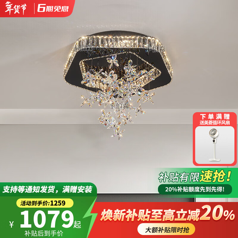 卡伯森意式极简卧室水晶吸顶灯2026年新款现代轻奢大气高级感花瓣书房灯 透明色花款-直径53*高47CM【无极+天猫精灵】