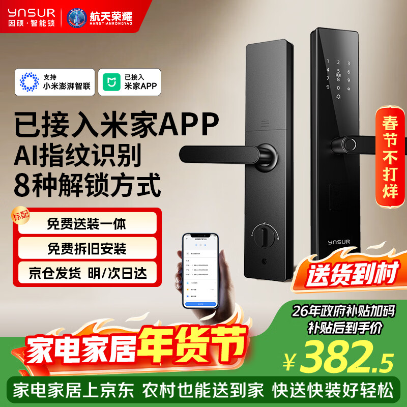 因硕【已接入米家APP】指纹门锁智能锁密码锁防盗电子锁T30M 送装一体