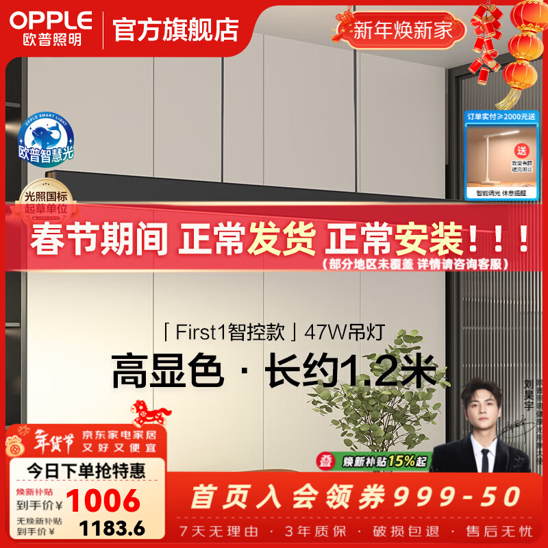 欧普照明(OPPLE)全光谱护眼一字长条新款家用吊灯餐厅灯现代简约高端大气灯具 First1智控/全光谱/Ra98黑色1.2m