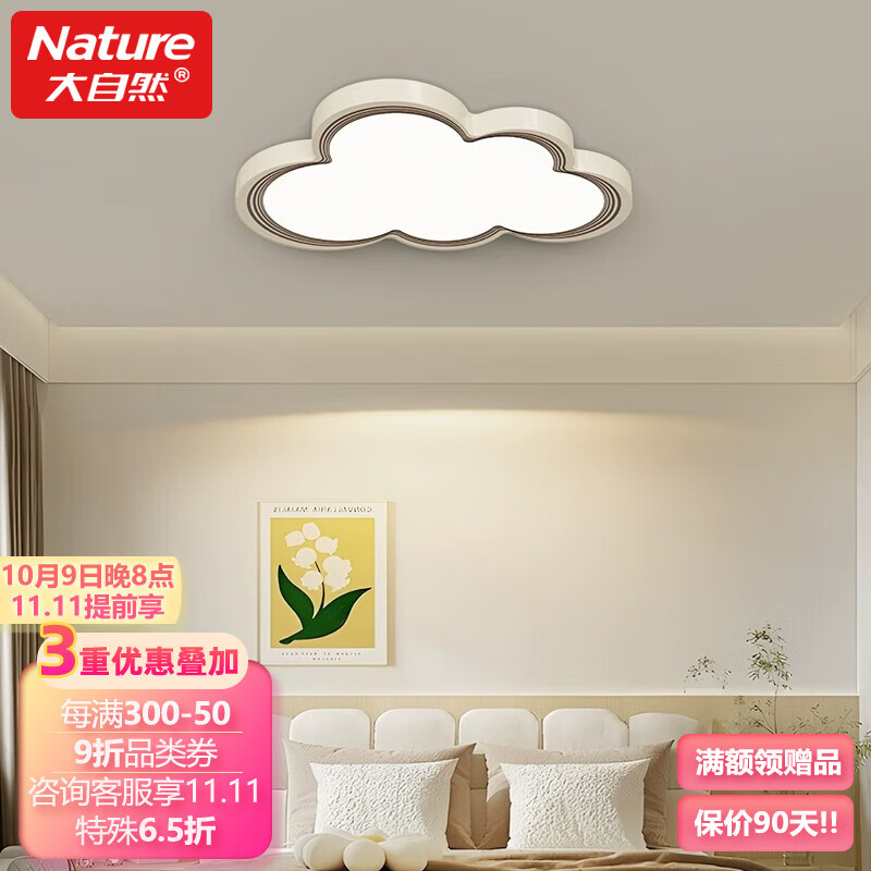 大自然照明卧室吸顶灯现代简约大气餐厅儿童房灯2025新款护眼书房灯中山灯具 大云朵54CM 三色变光