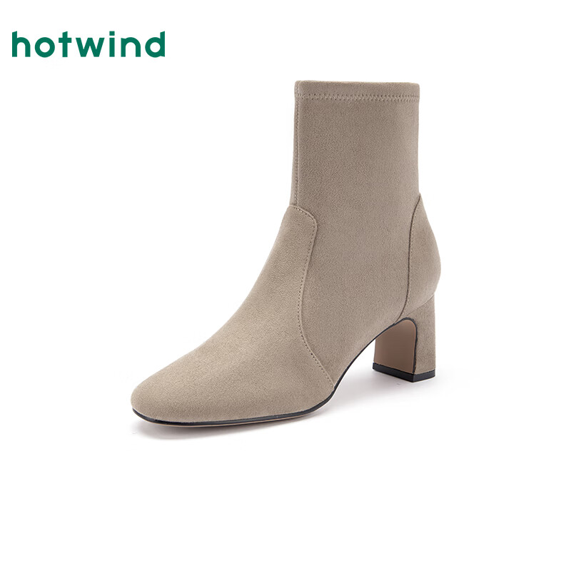 热风高跟时装靴女2025年冬季新款百搭增高瘦瘦靴休闲短靴子女鞋子 09灰色 35