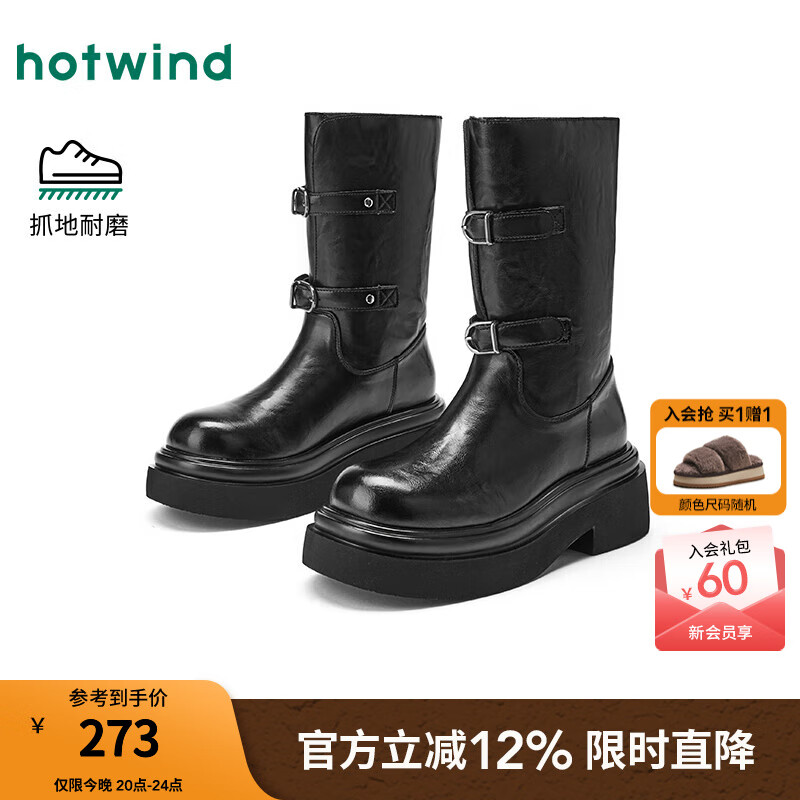 热风厚底时装靴女2025年冬季新款增高中筒骑士靴黑色马丁靴子女鞋 01黑色 39