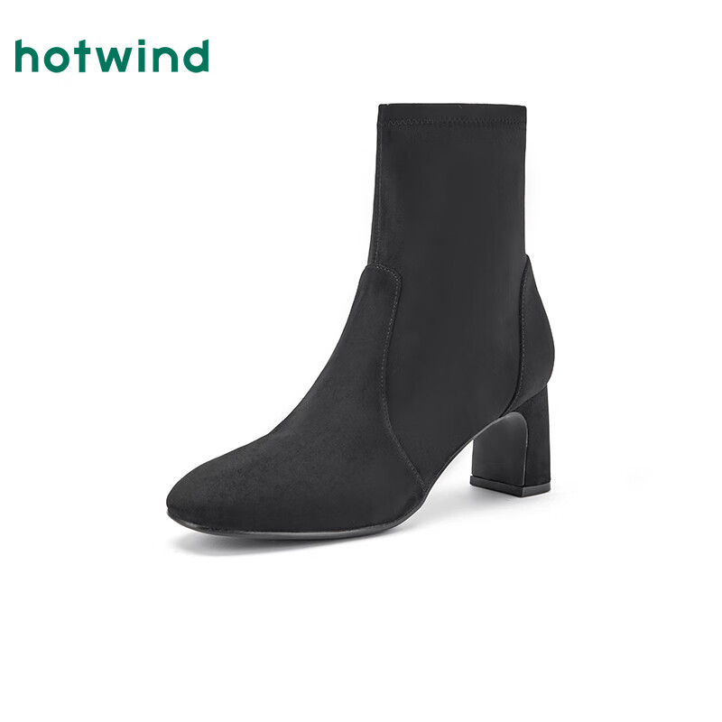 热风高跟时装靴女2025年冬季新款百搭增高瘦瘦靴休闲短靴子女鞋子 01黑色 34