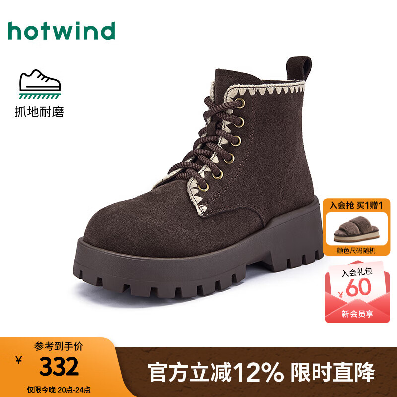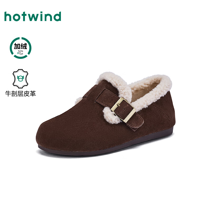 热风(Hotwind)【商场同款】加绒勃肯鞋2025年冬季新款复古毛毛鞋百搭棉鞋女鞋 02棕色 34