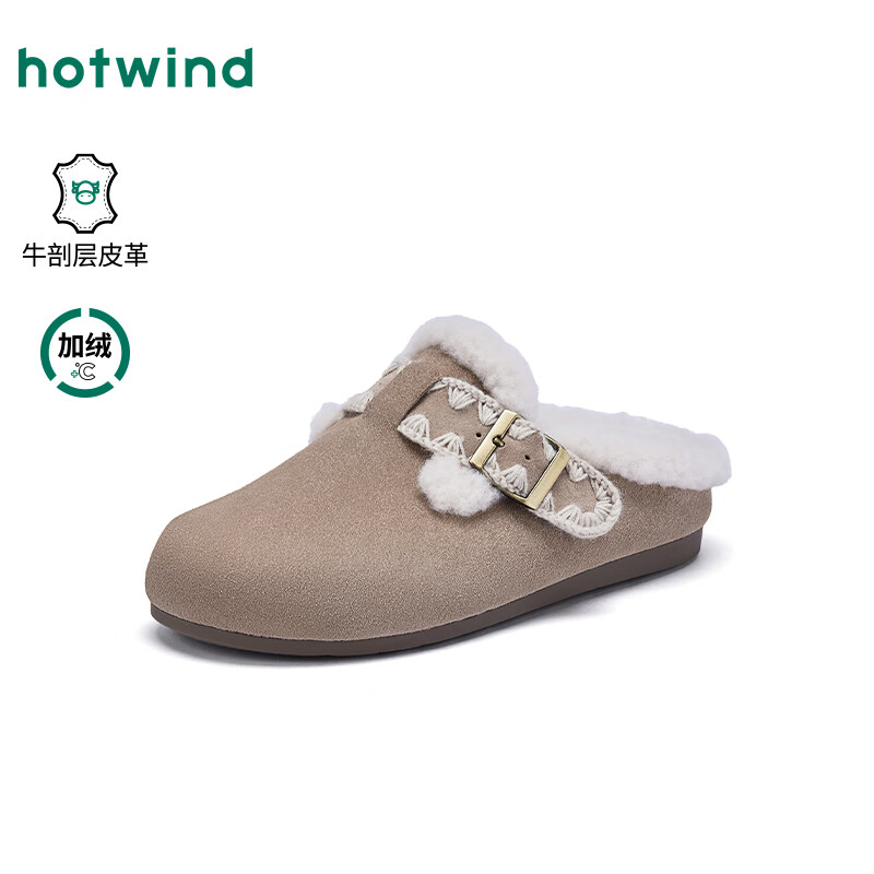 热风(Hotwind)【商场同款】加绒勃肯鞋女2025年冬季新款复古百搭包头休闲半拖鞋 03米色 34