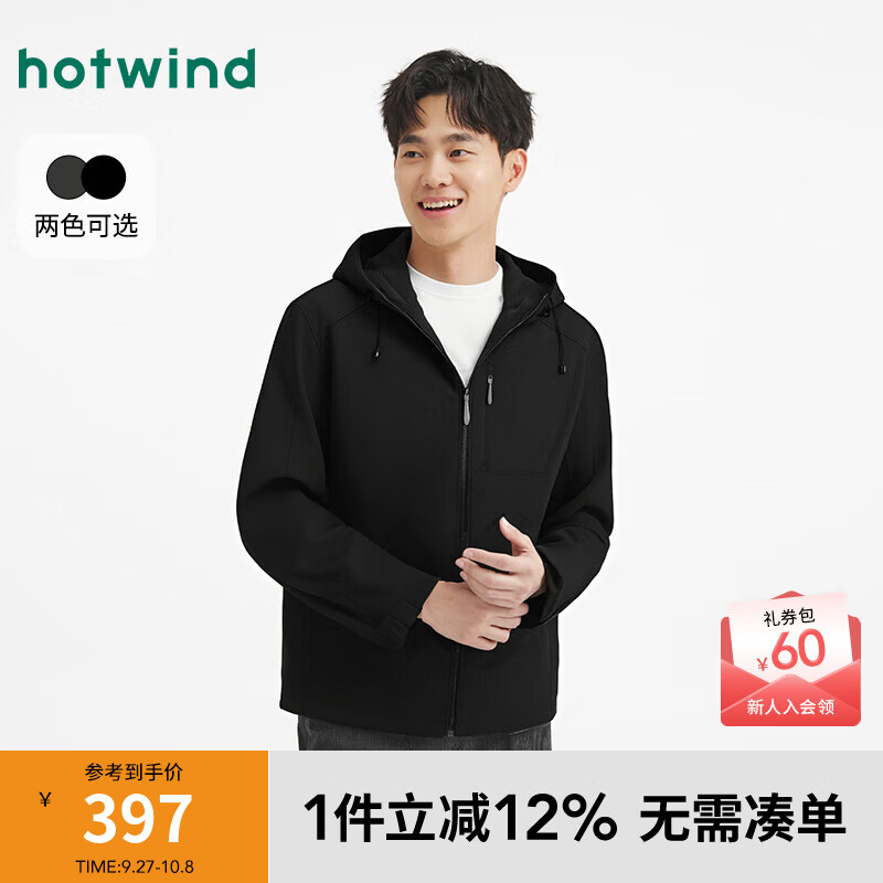 热风男士夹克外套上衣2025年秋季新款户外连帽夹克机能风户外外套 01黑色 S