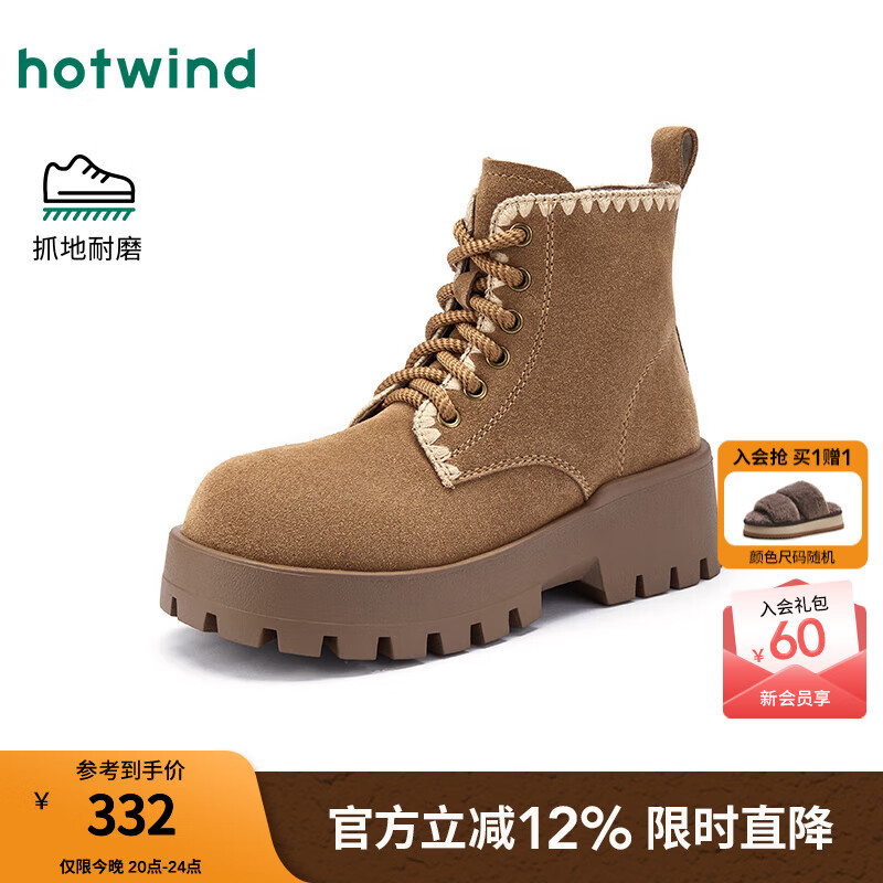 热风厚底工装靴女2025年冬季新款百搭马丁靴休闲大黄靴子女鞋子 02棕色 34