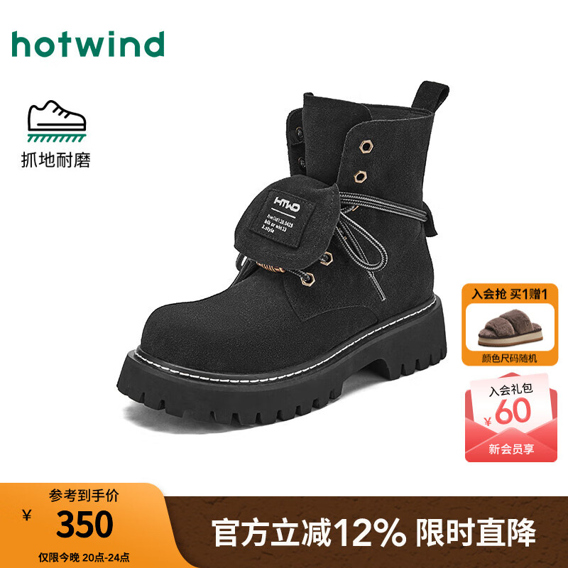 热风复古工装靴女2025年秋季新款潮酷户外马丁靴百搭短靴子女鞋子 01黑色 38