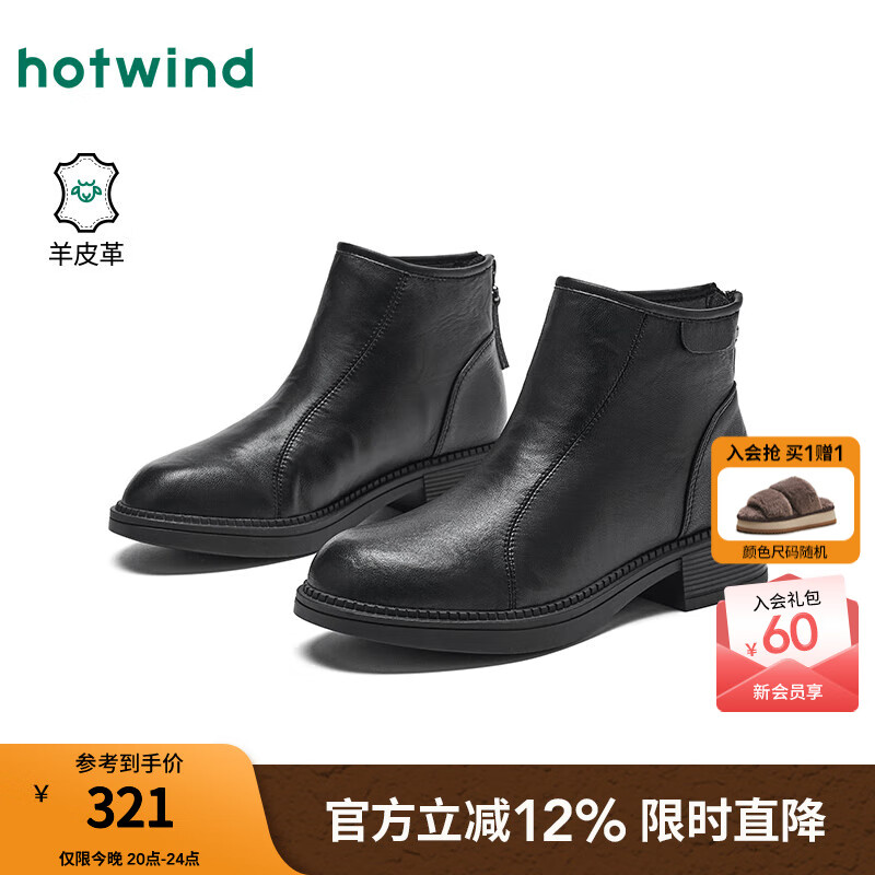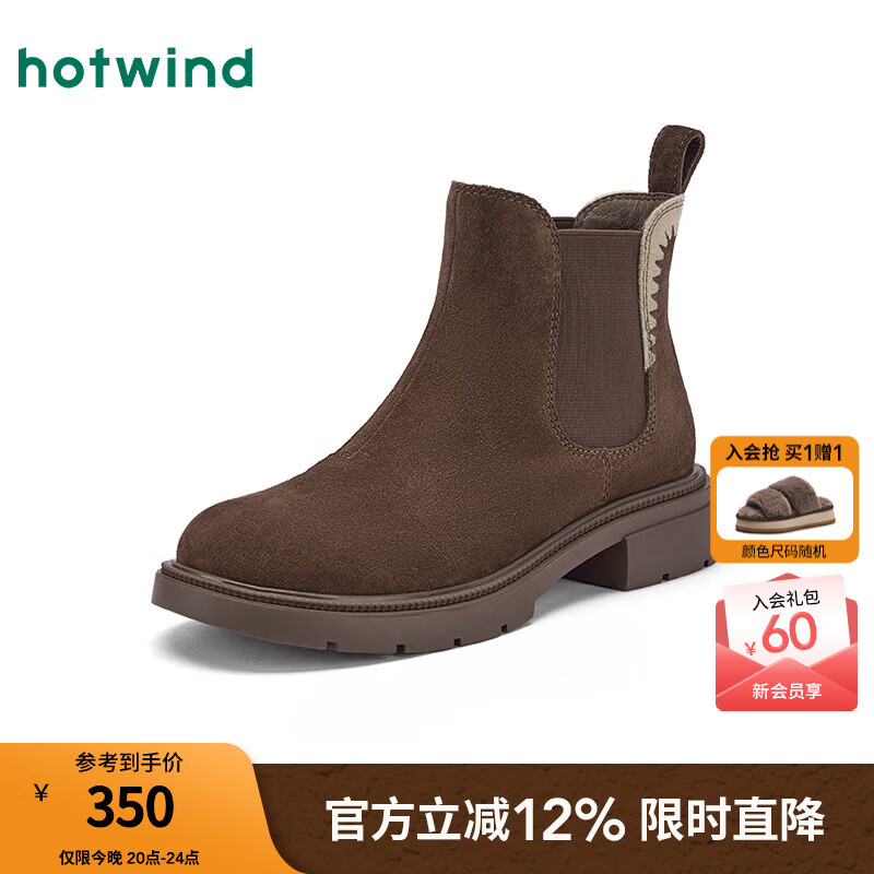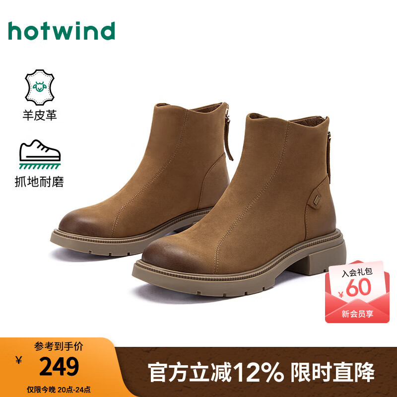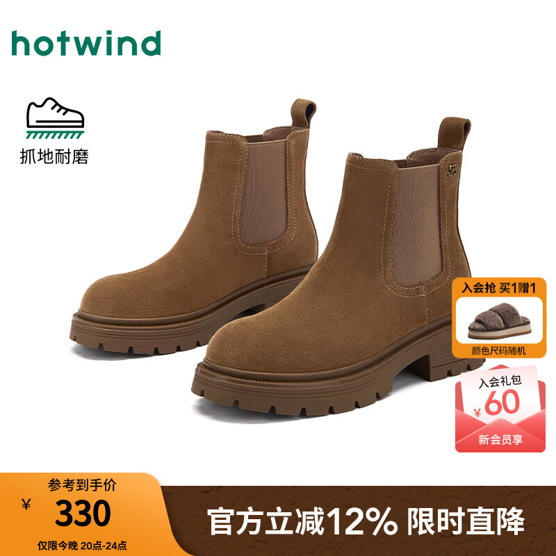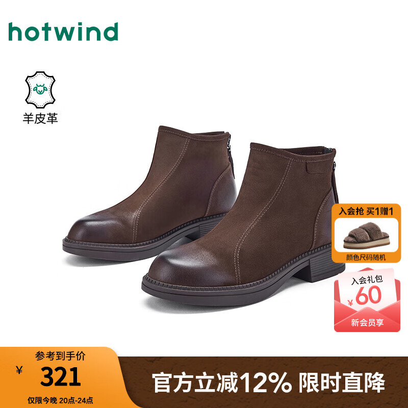 热风(Hotwind)【商场同款】雪地靴女鞋2025年冬季新款户外百搭复古棉鞋加厚短靴 02棕色 34