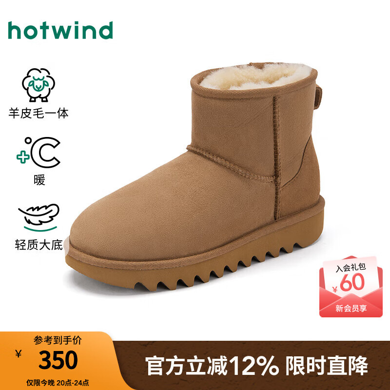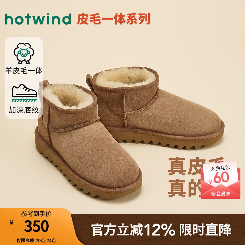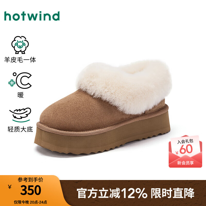 热风(Hotwind)【商场同款】雪地靴女鞋2025年冬季新款女士户外保暖棉鞋厚底短靴 02棕色 皮毛一体 34