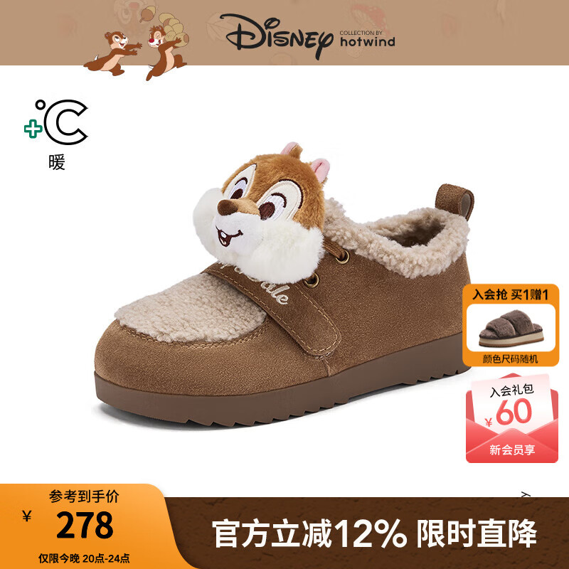 热风【迪士尼系列】雪地靴2025年冬季新款厚底棉鞋棕色勃肯风女鞋 08杏色 34