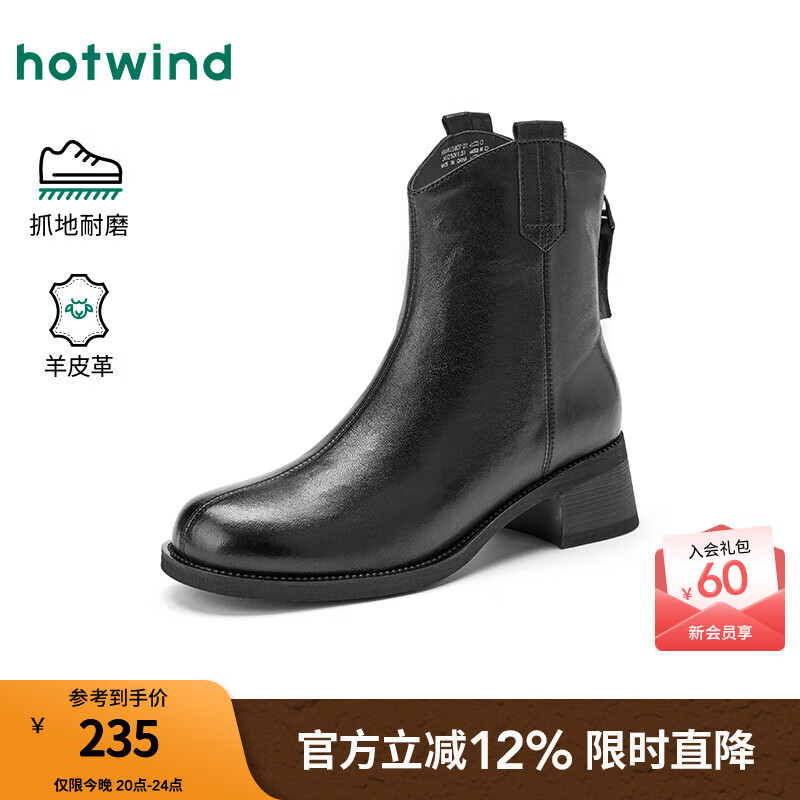 热风粗跟时装靴女鞋2025冬季新款黑色通勤百搭短筒靴显瘦增高靴子 01黑色 (羊头层皮革) 37