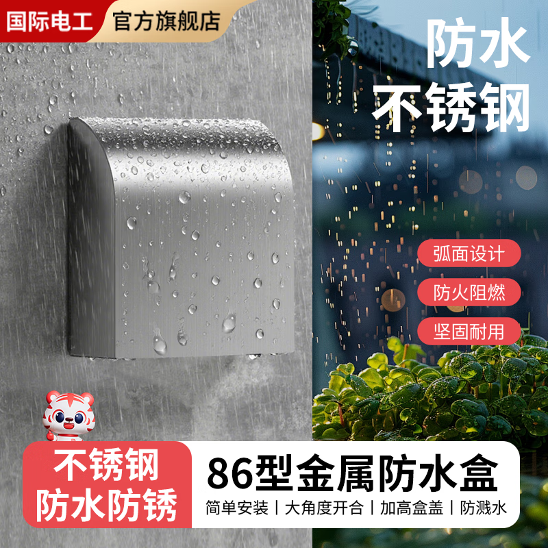 FDD国际电工不锈钢防水盒86型厨房插座防晒户外室外防雨罩开关防水罩保护盒 一位-86型金属防水盒