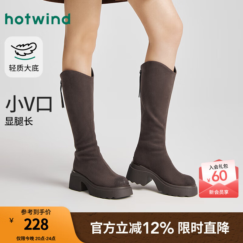 热风厚底骑士靴女2025年冬季新款美拉德V口长筒靴百搭粗跟时装靴 02棕色 38