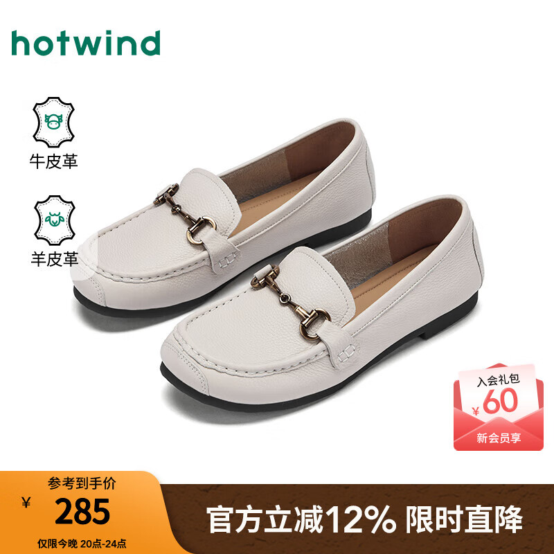 热风【商场同款】女鞋平底乐福鞋2025年秋新款时尚通勤单鞋百搭小皮鞋 03米色 牛头层皮革 34
