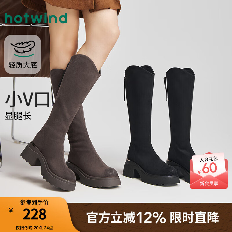 热风厚底骑士靴女2025年冬季新款美拉德V口长筒靴百搭粗跟时装靴 01黑色 37