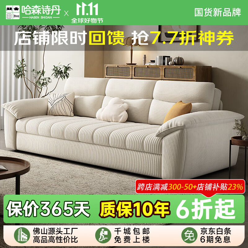 哈森诗丹广东佛山新款可折叠沙发床两用小户型客厅高端可拆洗灯芯绒布沙发 外径:1.5m(无储物)加厚灯芯绒 高弹海绵款(软硬适中)