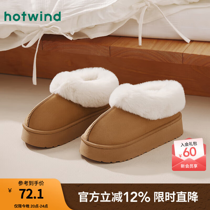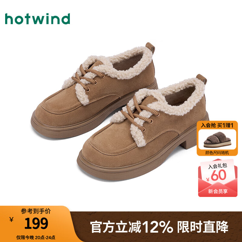 热风(Hotwind)女鞋加绒乐福鞋2025年冬季新款休闲毛毛鞋勃肯风保暖棉鞋女豆豆鞋 02棕色 37