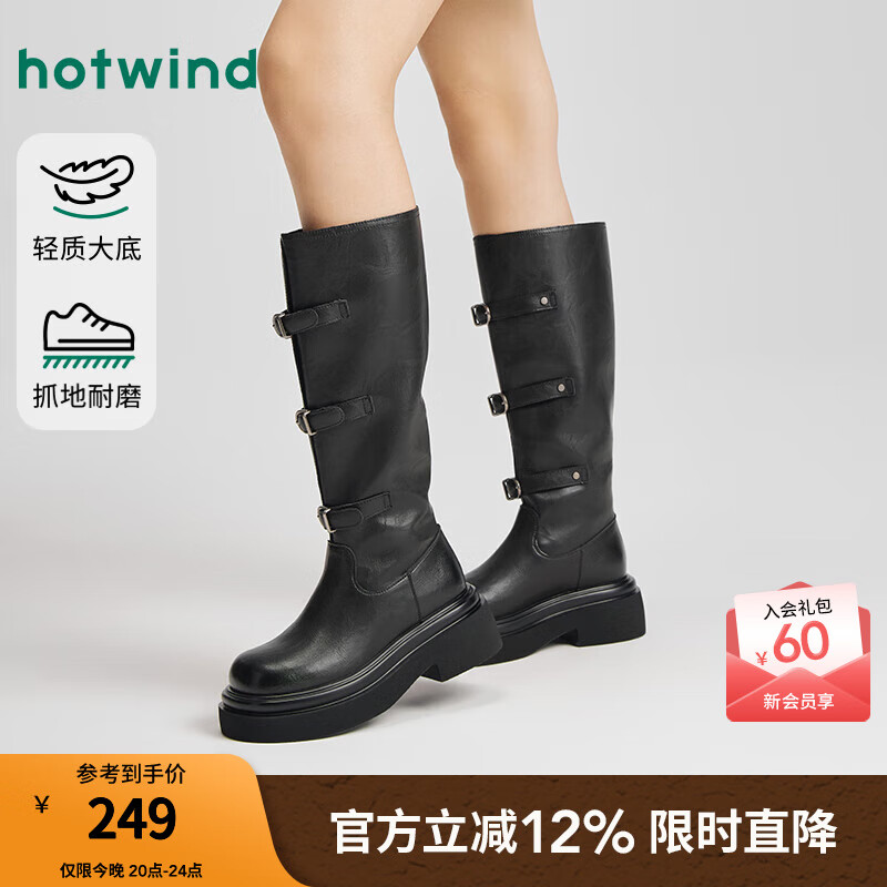 热风厚底长筒靴女2025年冬季新款增高时装靴子百搭休闲骑士靴女鞋 01黑色 34