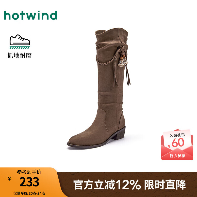 热风牛仔西部靴子2025年冬季新款复古棕色长筒靴美拉德堆堆靴女鞋 08杏色 34