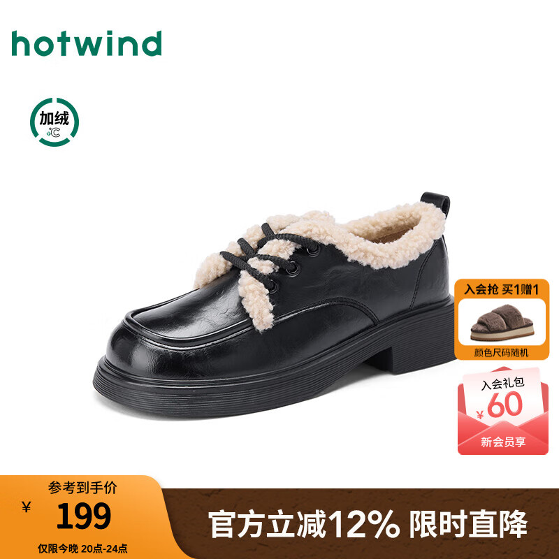 热风(Hotwind)加绒乐福鞋女2025年冬季新款学院风保暖毛毛鞋百搭通勤女鞋子 01黑色(光面)H02W25V20 37