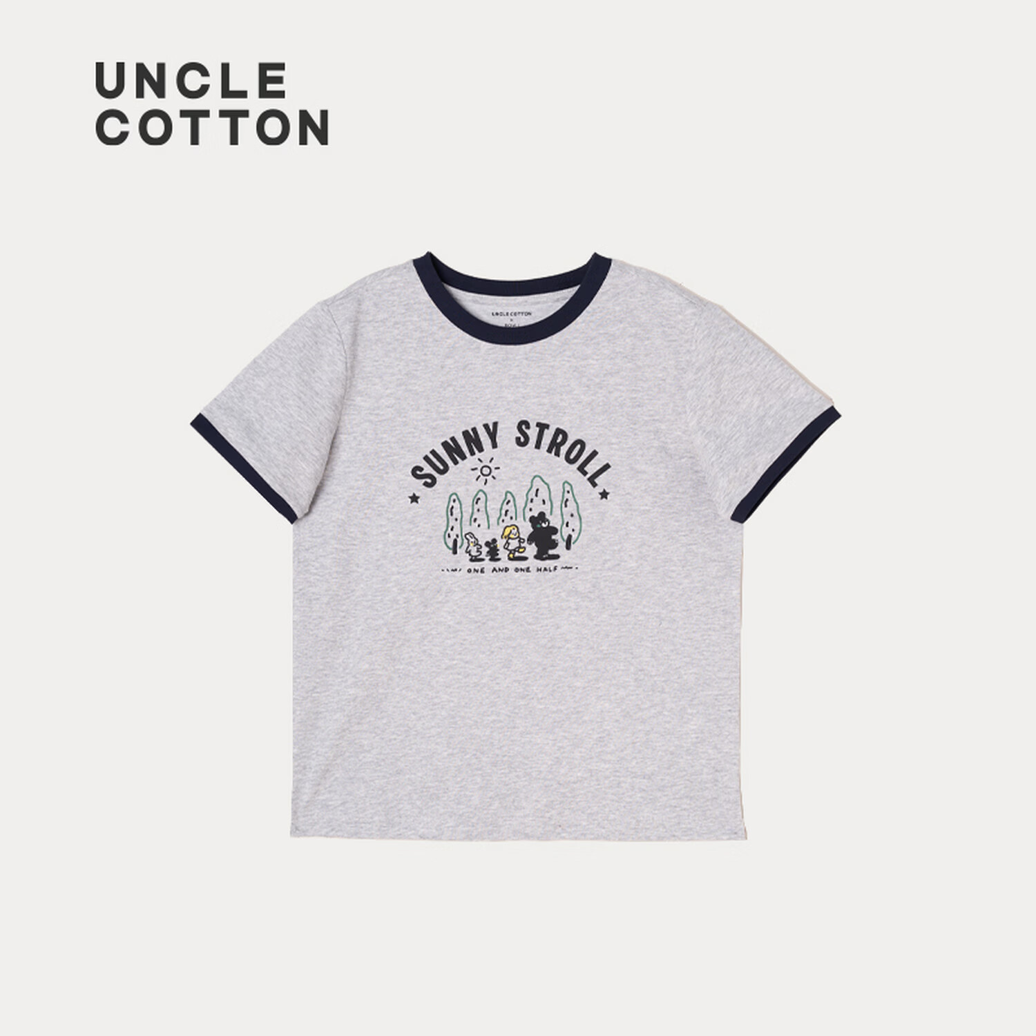 棉叔叔【新品冰感棉短袖T恤】棉叔叔女童撞色短袖T恤男童春夏新品3.18 藏青麻灰 120 120