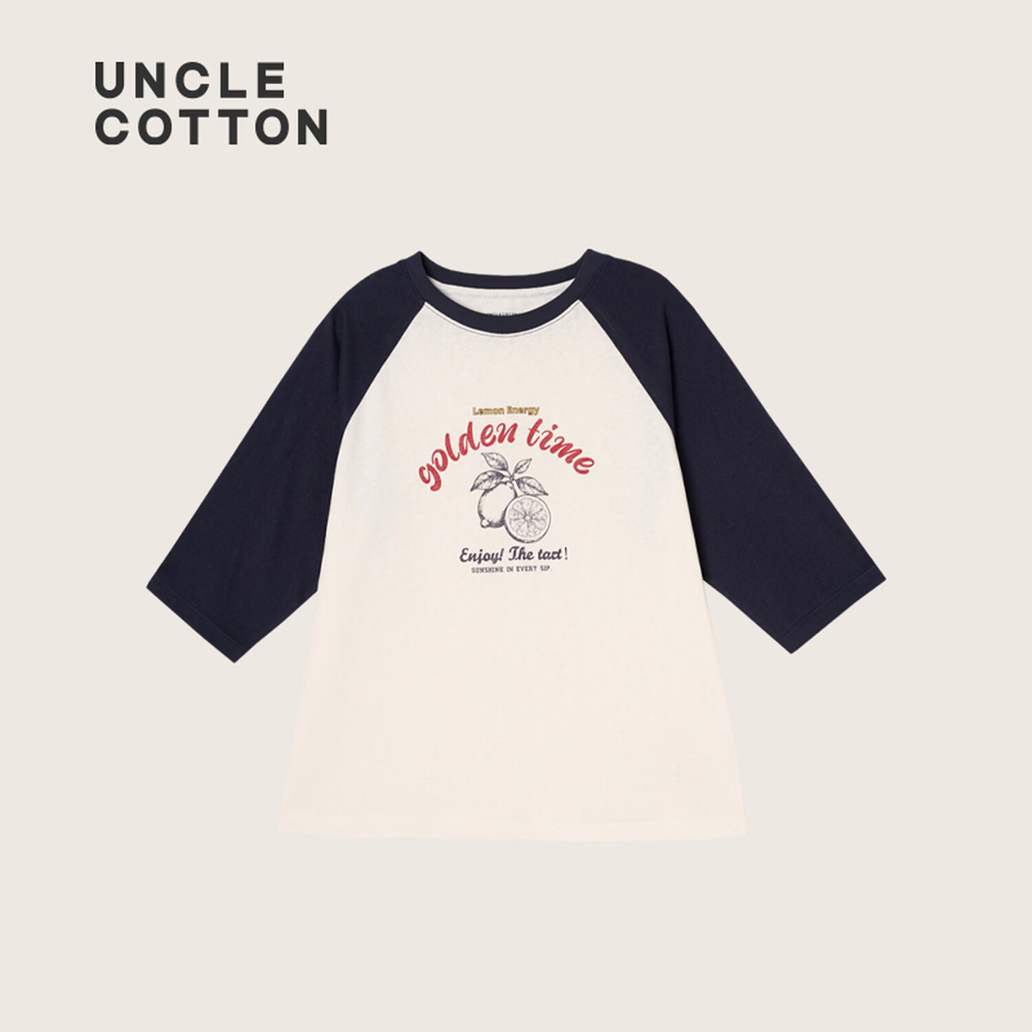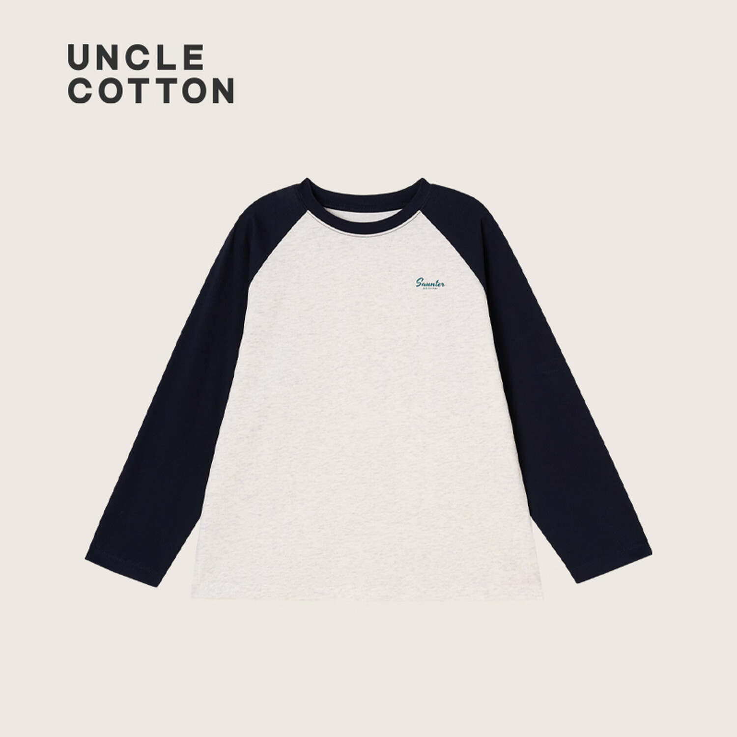 棉叔叔【冰感棉长袖T】棉叔叔女童撞色插肩袖T恤凉感廓形男童长袖T2.24 藏青拼白 120 120