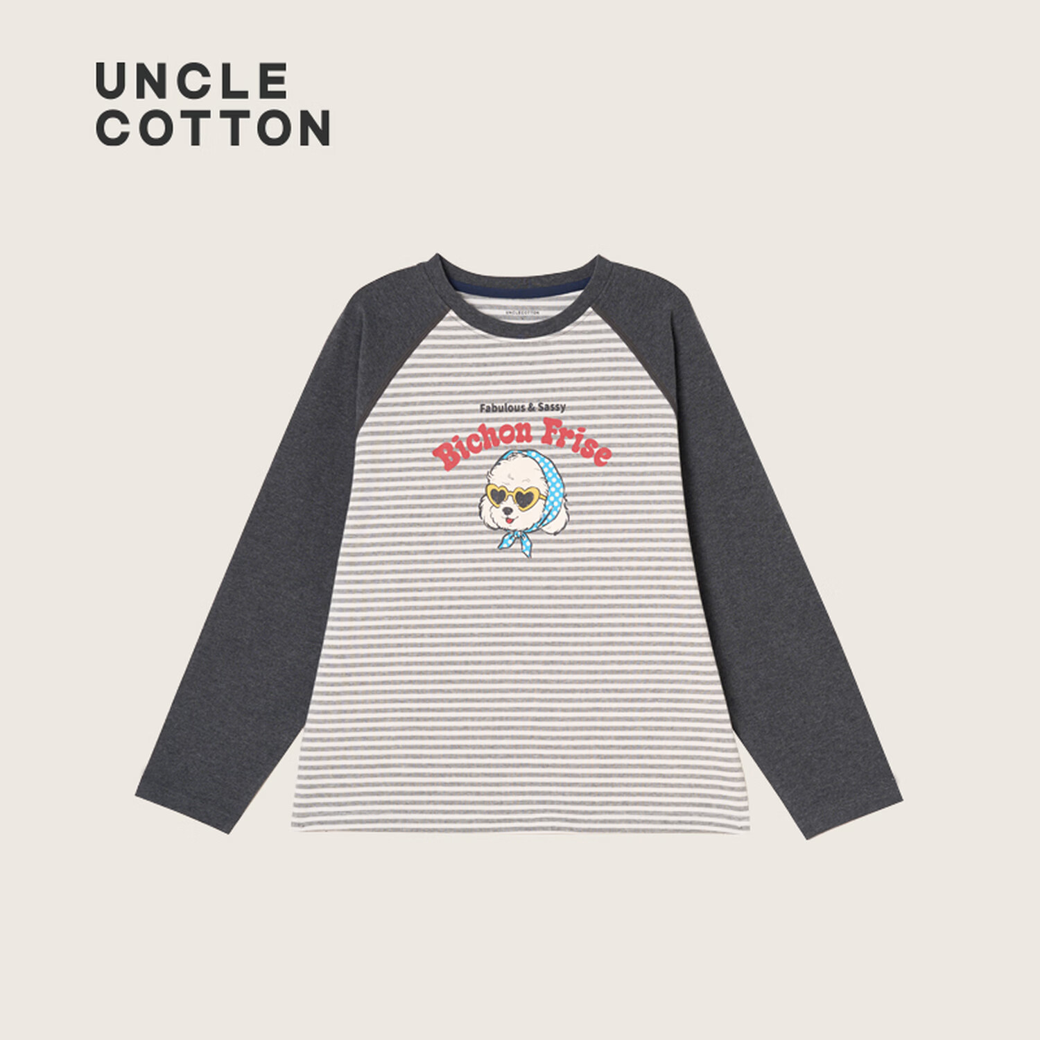 棉叔叔【新品长袖T恤】棉叔叔女童2026春季条纹撞色印花长袖T恤男童3.18 花黑条纹 120 120
