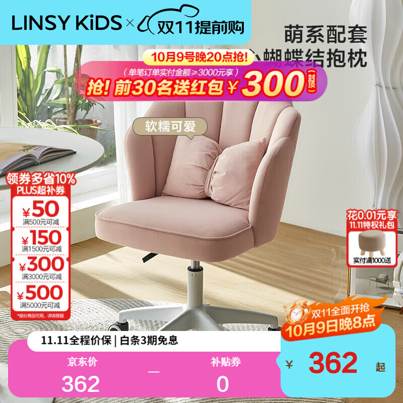 LINSY KIDS电脑椅大学生宿舍靠背椅舒适久坐办公座椅女生化妆椅 【女神粉】电脑椅/化妆凳BY047-A