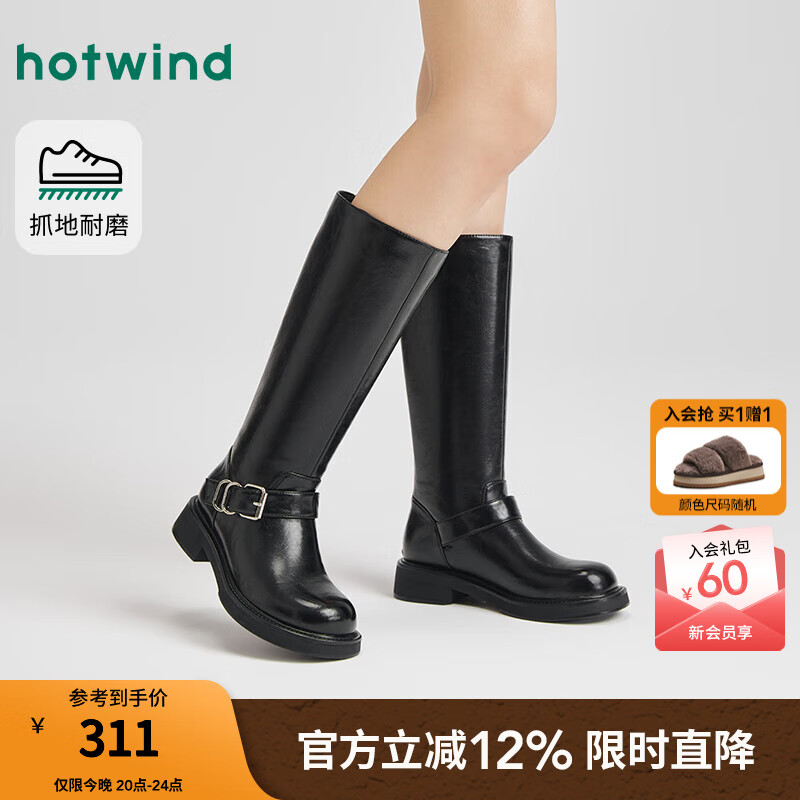 热风黑色骑士靴女2025年冬季新款百搭牛仔西部靴时装长筒靴子女鞋 01黑色 36