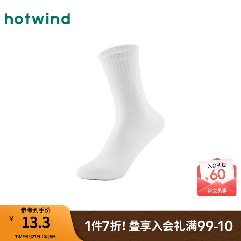 热风【商场同款】男士袜子中帮袜25年秋新款素色橡筋中帮袜透气棉袜子 04白色 1双 均码