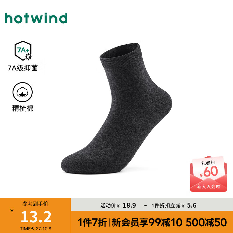 热风男士短袜2025年秋季新款抑菌低帮袜精梳棉袜舒适无骨缝线袜子 52深灰 1双 均码