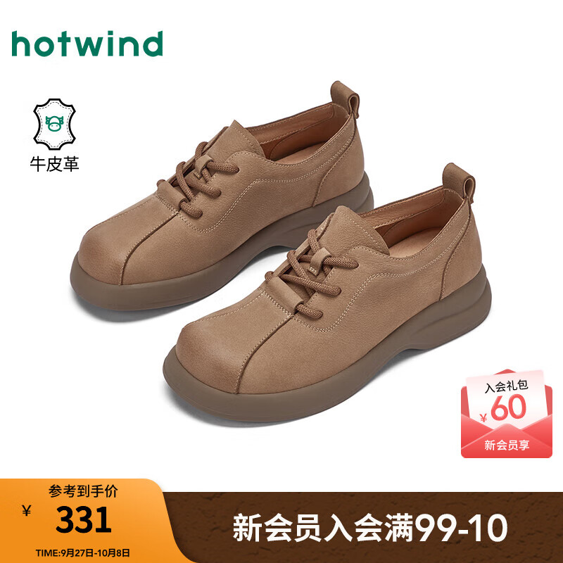 热风【商场同款】厚底单鞋女鞋2025年秋季新款女士百搭复古通勤小皮鞋 08杏色 牛头层皮革 37