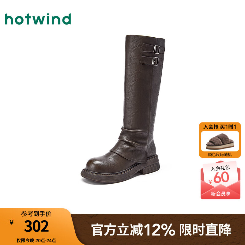 热风厚底长筒靴女2025年冬季新款美拉德复古骑士靴百搭靴子女鞋子 02棕色 36