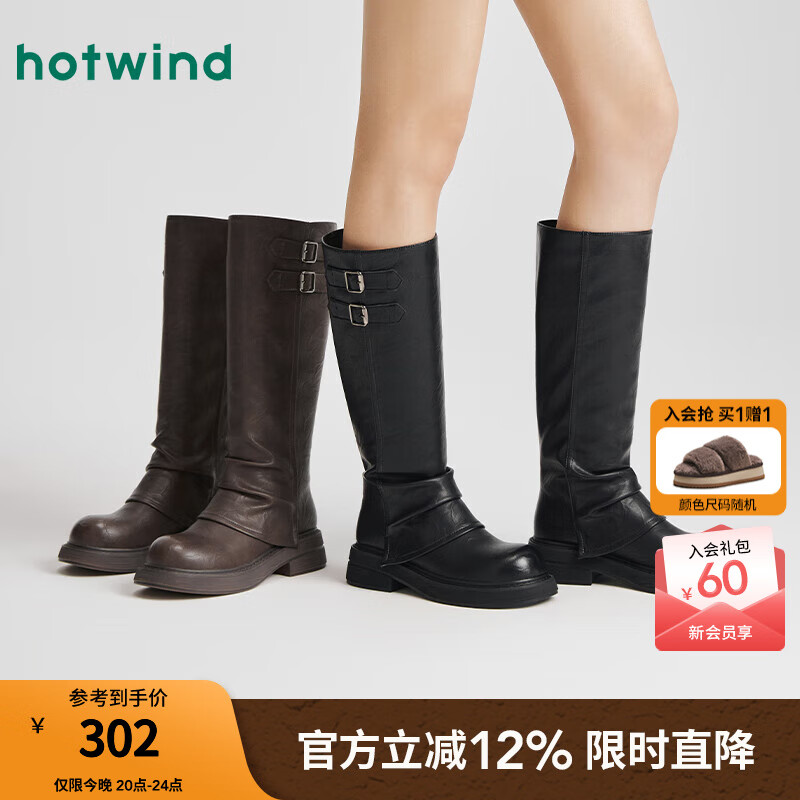 热风厚底长筒靴女2025年冬季新款美拉德复古骑士靴百搭靴子女鞋子 01黑色 39