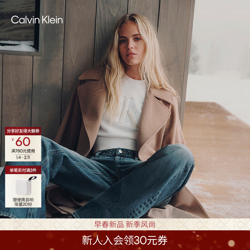 Calvin KleinJeans【复刻90系列】25秋冬新款女士ck字母贴袋纯棉直筒牛仔裤