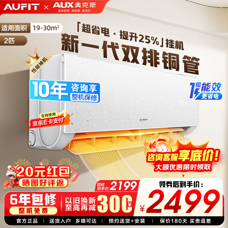AUFIT空调AUX奥克斯出品大2匹柜机挂机家用新一级能效变频冷暖WiFi智控客厅大卧室立柜式以旧换新家电 2匹 一级能效挂机新一级WiFi智控+双排铜管